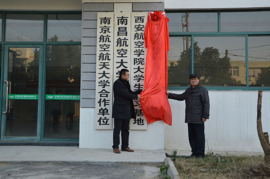 日前,我院无人机实习基地在“苏州绿农航空植保科技有限公司”挂牌,校企合作办公室孙照齐代表学院出席揭牌仪式,和绿农航空总经理孙西廷共同为基地揭牌。航空系主任成农、副书记石刚富、李小光、沈小红等参加了仪式。