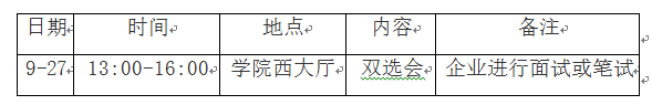 需要面试或笔试的单位,可提前申请,由校企合作与就业创业办公室另行安排场地
